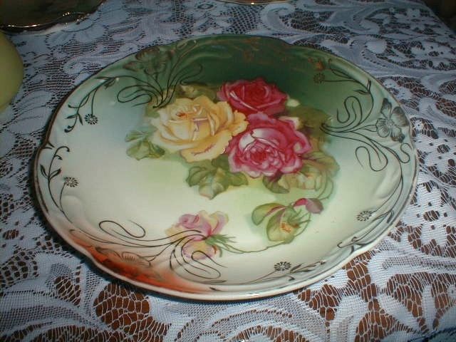 Stunning Antique Red Yellow Roses Charger Plate