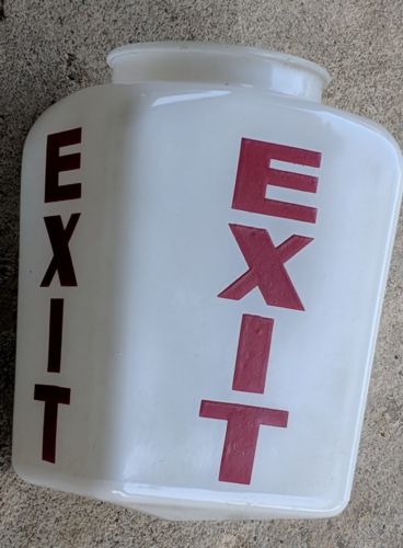 Title (ebay affiliate link): Vintage White Milk Glass Light Globe Red EXIT Sign Theater Industrial Steam Punk