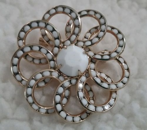 MILKGLASS VINTAGE CIRCLE FLOWER BROOCH PRONG SET CENTER