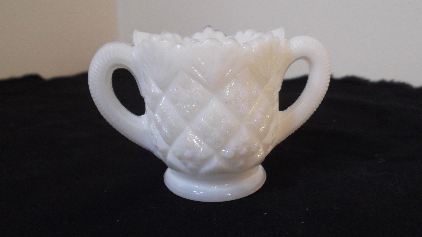 Title (ebay affiliate link): Vintage Milk Glass Quilted Diamond Toothpick Holder w/Fan Sawtooth Top&Handles