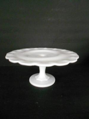 VINTAGE MILK GLASS PEDESTAL CAKE STAND PLATE SCALLOPED EDGE 11" DIAMETER