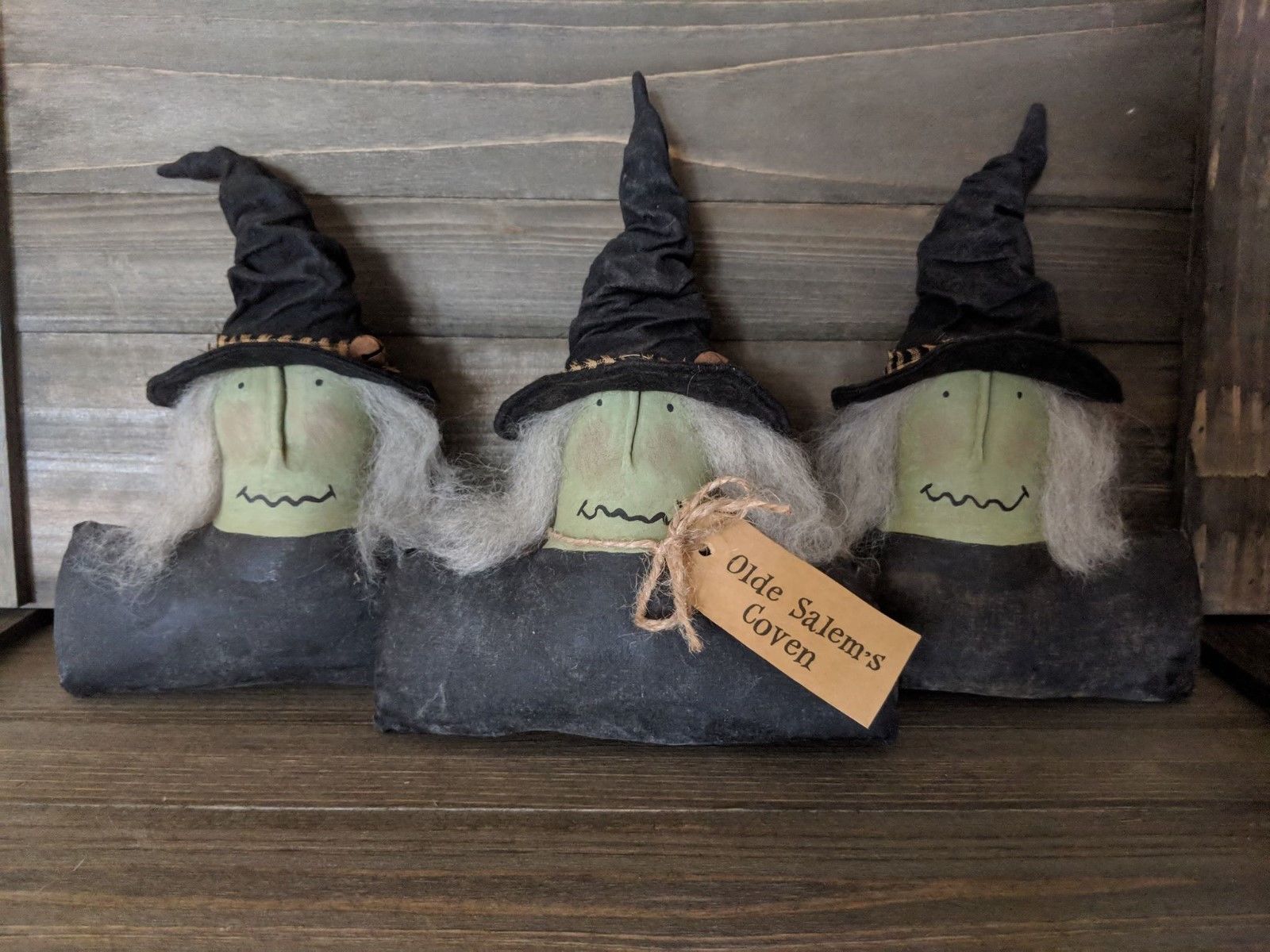 Title (ebay affiliate link): Lot of 3 Primitive Witch Stump Doll Ornies Bowl Fillers Tucks Halloween Decor