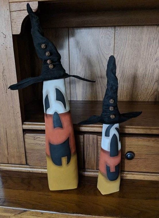 Title (ebay affiliate link): Primitive Halloween Witch Candy Corn Shelf Sitters Fall Decor