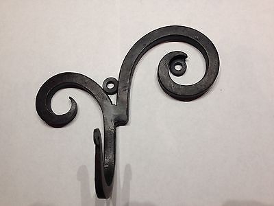 Country Primitive Iron Ram''s Horn Single Wall Hook Rustic Black