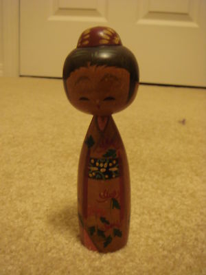 Antique Japanese Geisha Kokeshi wooden nodding doll