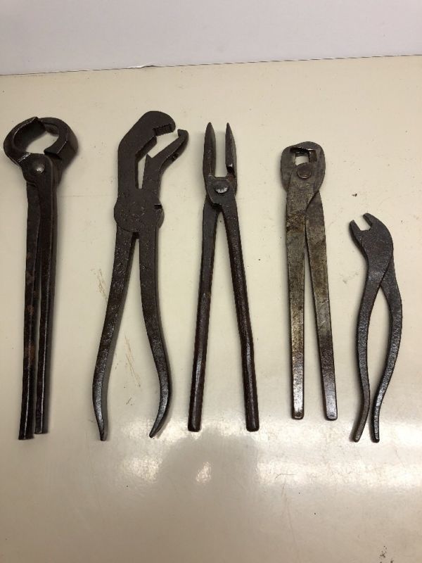Title (ebay affiliate link): Blacksmith/ Farrier Tools 5 Piece Vintage Lot, Tongs, Nail Puller, Pliers