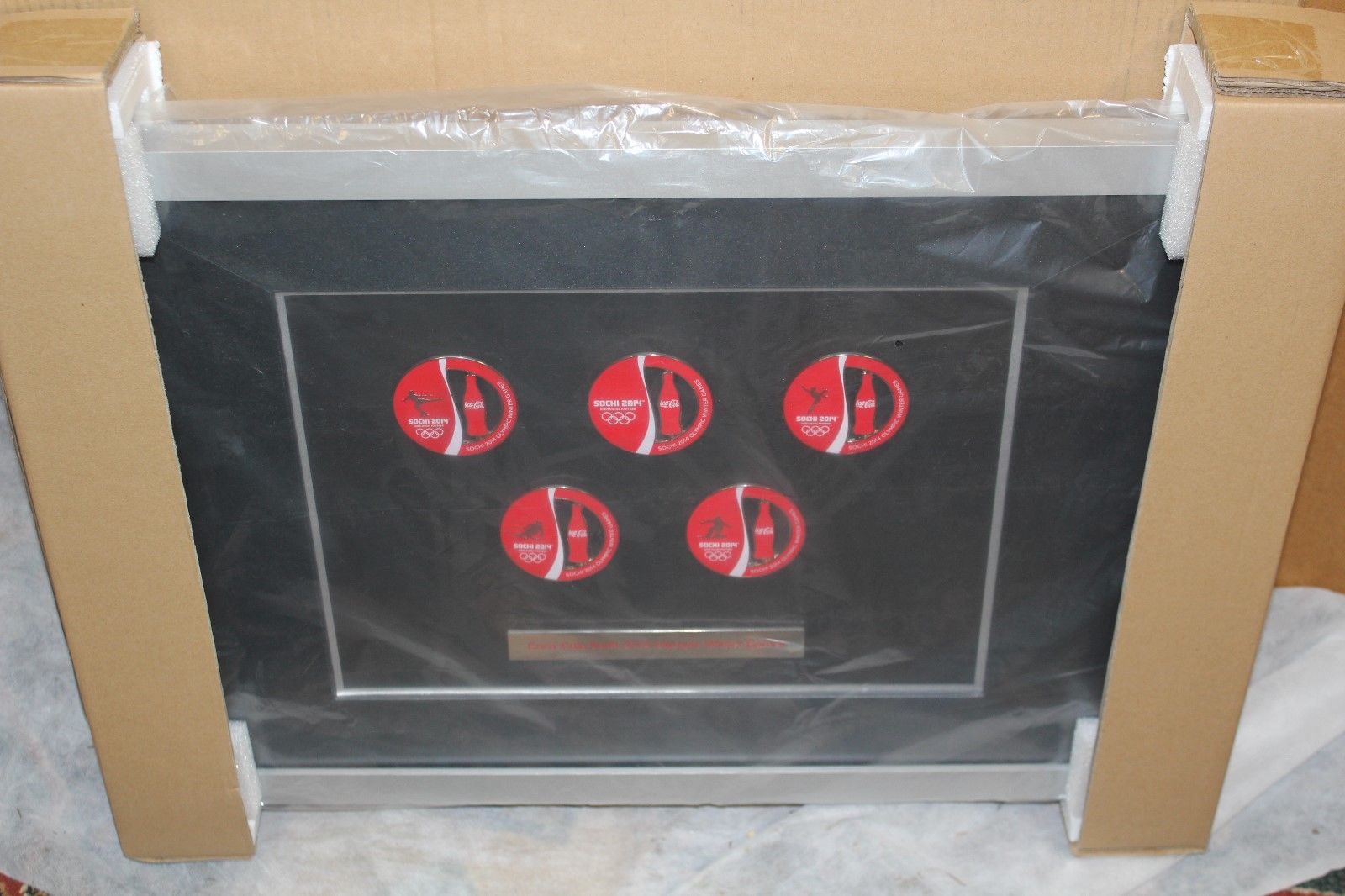 Title (ebay affiliate link): 2014 Coca-Cola Sochi Winter Olympics Collectible 20"x 27" Framed Pin Set JUMBO