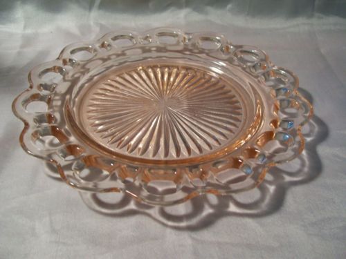 Title (ebay affiliate link): Old Colony Lacey Pink Depression Glass Luncheon Plate Serving Anchor Hocking Vtg