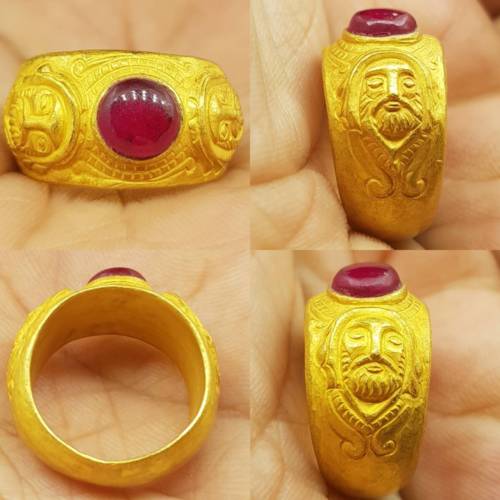 Title (ebay affiliate link): Ruby Stone Rare Unique 22k Karat gold Ring Roman king 2 faces # 3G