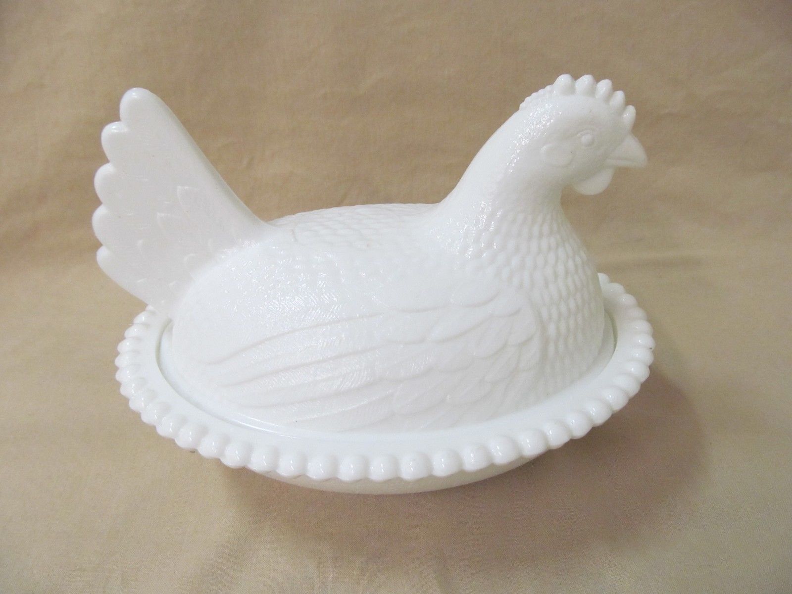 Title (ebay affiliate link): Vintage Hen on Nest Indiana White Milk Glass 7" Covered Candy/Trinket Dish Bowl
