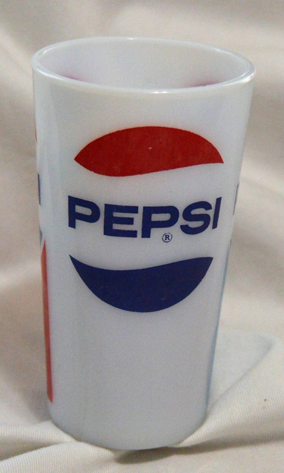 Title (ebay affiliate link): Vintage Pepsi Cola Glass Tumbler Blue Red White Milk Glass Continental Can Co.