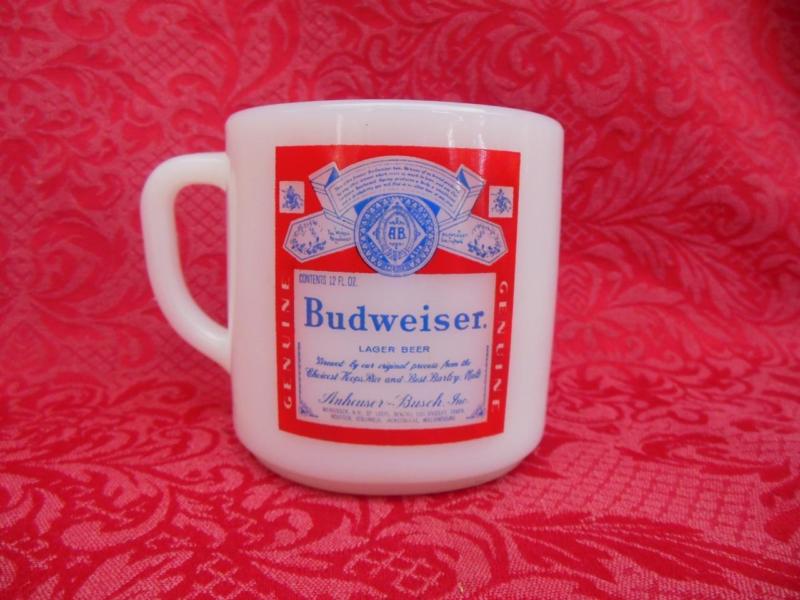 Title (ebay affiliate link): VINTAGE FEDERAL GLASS MILK GLASS D HANDLE BUDWEISER COFFEE MUG - ADVERTISING