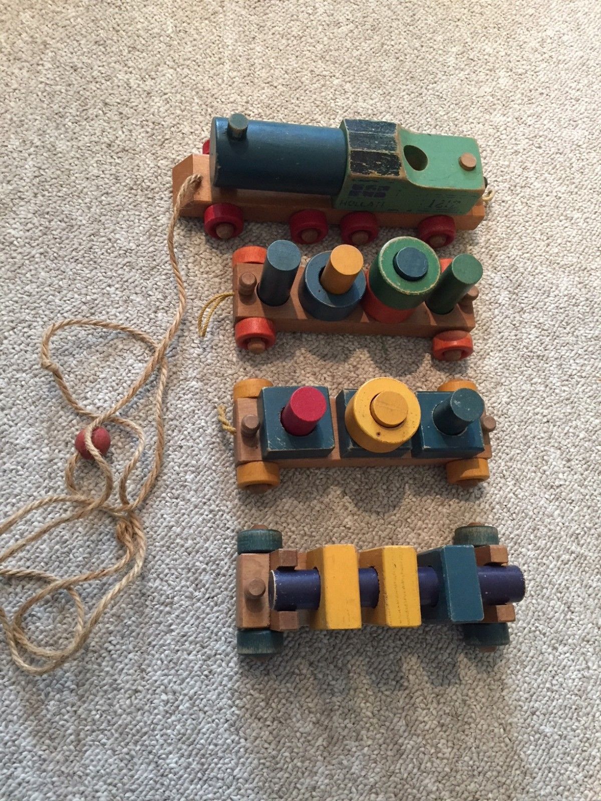 Misc Lot Vintage Wood Toys - Train, Threading, Rattle