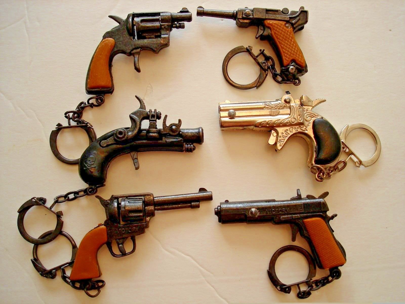Title (ebay affiliate link): 6 KEYCHAINS 2.5" MINIATURE TOY CAP GUN DIE CAST. COLLECTIBLES