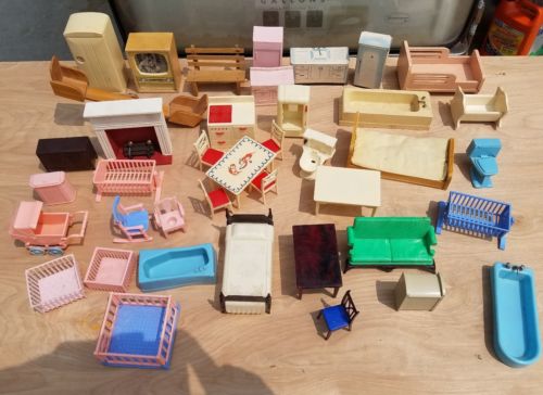 Title (ebay affiliate link): HUGE Lot of Vintage Antique Doll House Furniture Accessories Toy Wooden Plastic