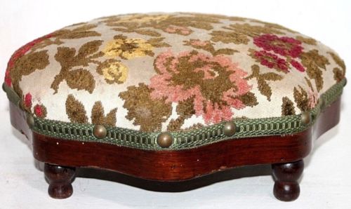 Title (ebay affiliate link): ANTIQUE VICTORIAN 1890s NEEDLEPOINT FOOTSTOOL / OTTOMAN W/ 8 SIDED MAHOGANY BASE