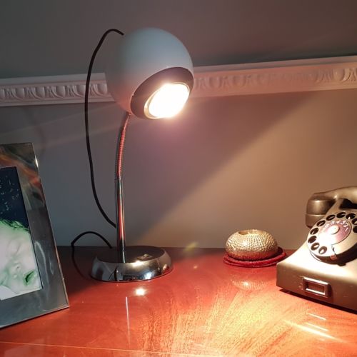 Title (ebay affiliate link): Vintage Retro 60s 70s Guzzini? White and Chrome Eyeball Desk Light / Lamp.