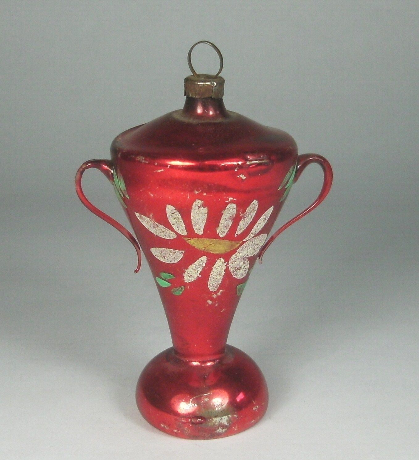 Title (ebay affiliate link): Antique Blown Red Mercury Glass Handled Urn Hand Painted Christmas Oranment