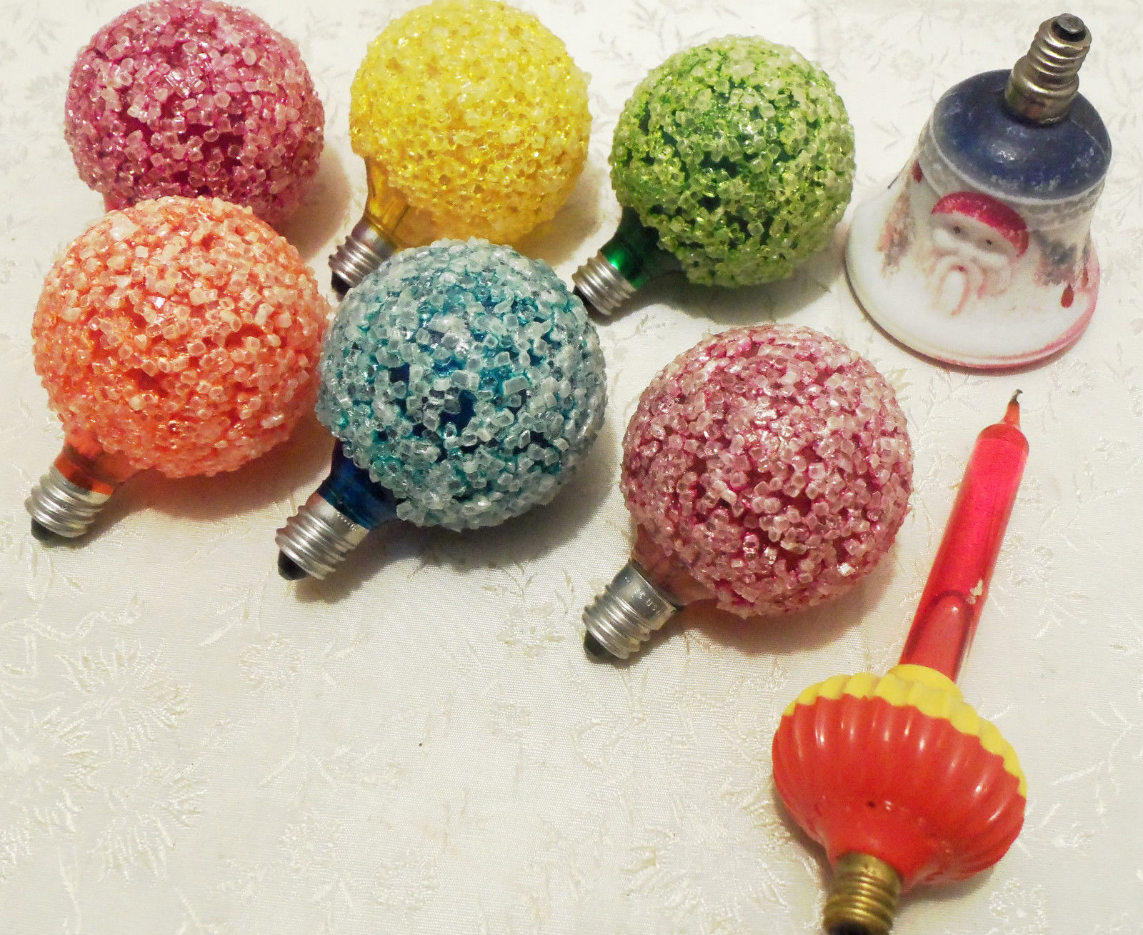 Title (ebay affiliate link): Antique Vintage Christmas Tree Light Bulbs.Santa Bubble Icy Rounds Lot of 8