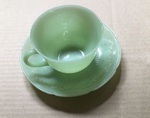 Title (ebay affiliate link): Vtg Cup And Saucer Jadite floral pattern