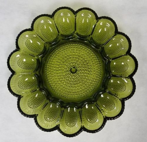 Vintage Depression Glass GREEN Deviled Egg Plate