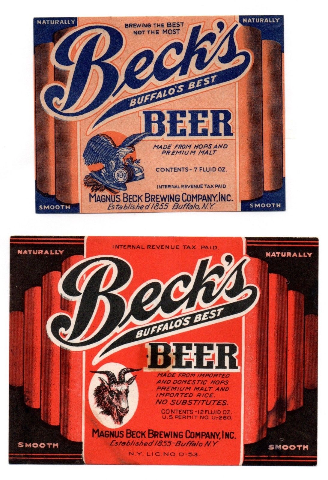 Title (ebay affiliate link): Magnus Beck Brewing Company Inc. Buffalo, NY - 2 x old IRTP beer labels see scan