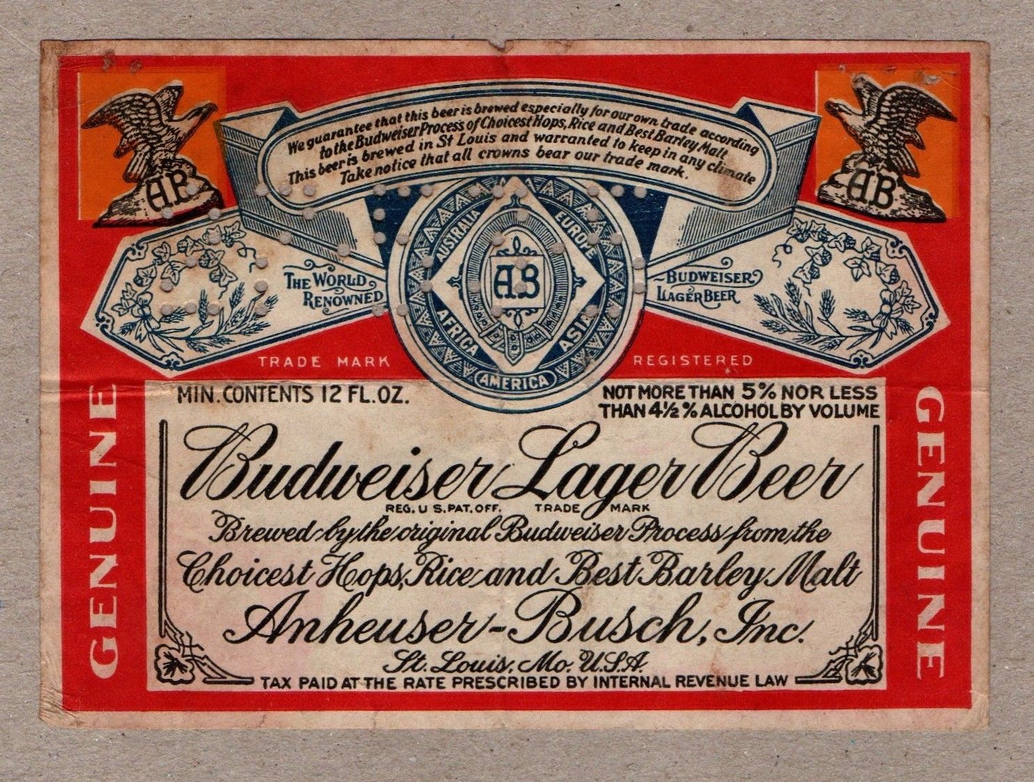 Title (ebay affiliate link): Anheuser-Busch, Inc. St. Louis. - Budweiser Lager Beer - old USA IRTP label