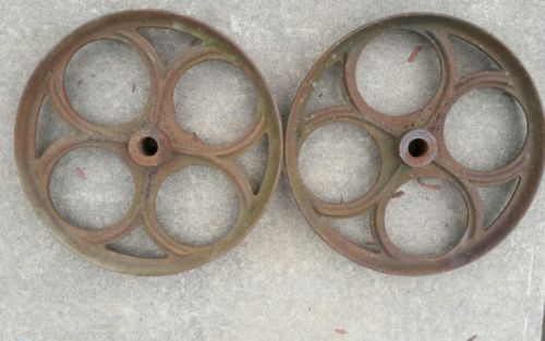 Title (ebay affiliate link): 2 VINTAGE FACTORY CART WHEELS 14 1/2 inch Lineberry ? Antique cast iron