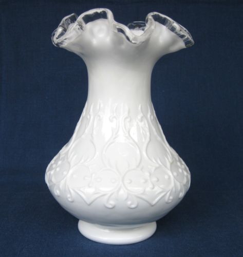 Fenton Spanish Lace 8" Vase ~ Silver Crest Milk Glass