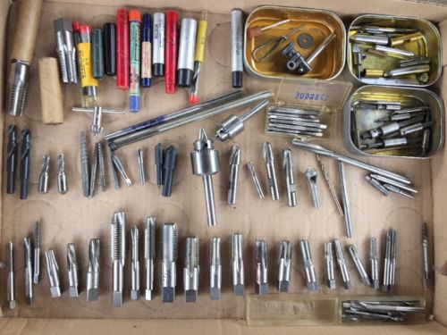 Title (ebay affiliate link): Vintage Machinist Tool Big Lot Weldon Bay State + Bit Cutters Drills Chucks Taps