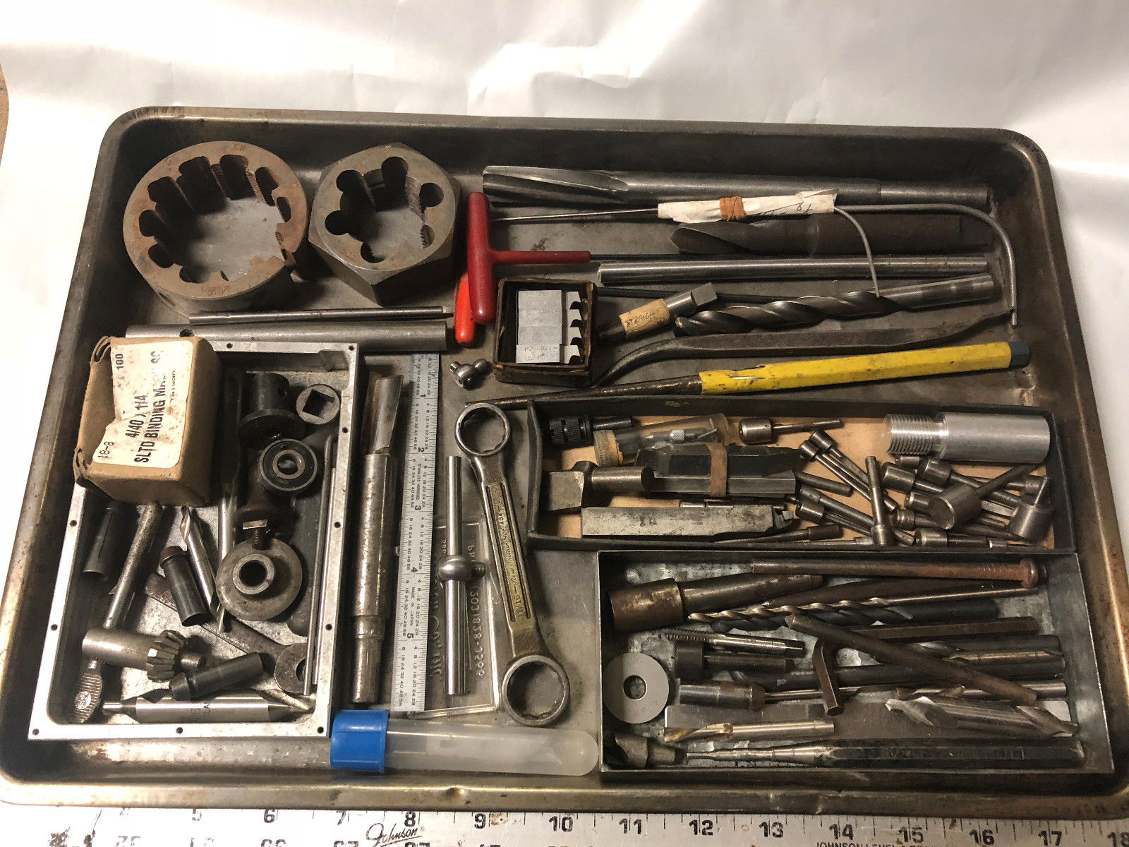 Title (ebay affiliate link): MACHINIST South Bend Atlas LATHE MILL Lot Gages Dies Chasers Cutters Parts Etc