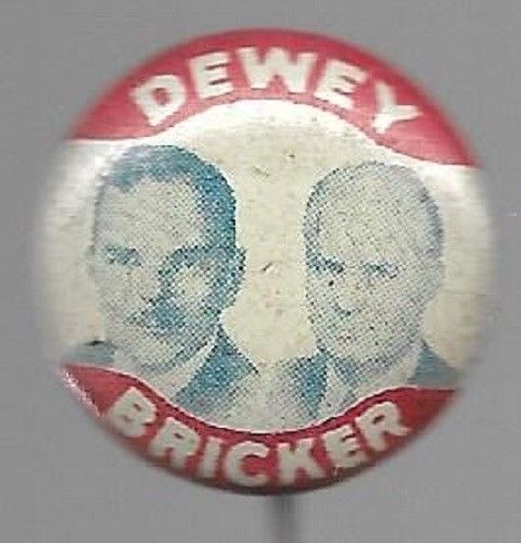 DEWEY AND BRICKER 1944 PRESIDENTIAL CAMPAIGN JUGATE POLITICAL PIN