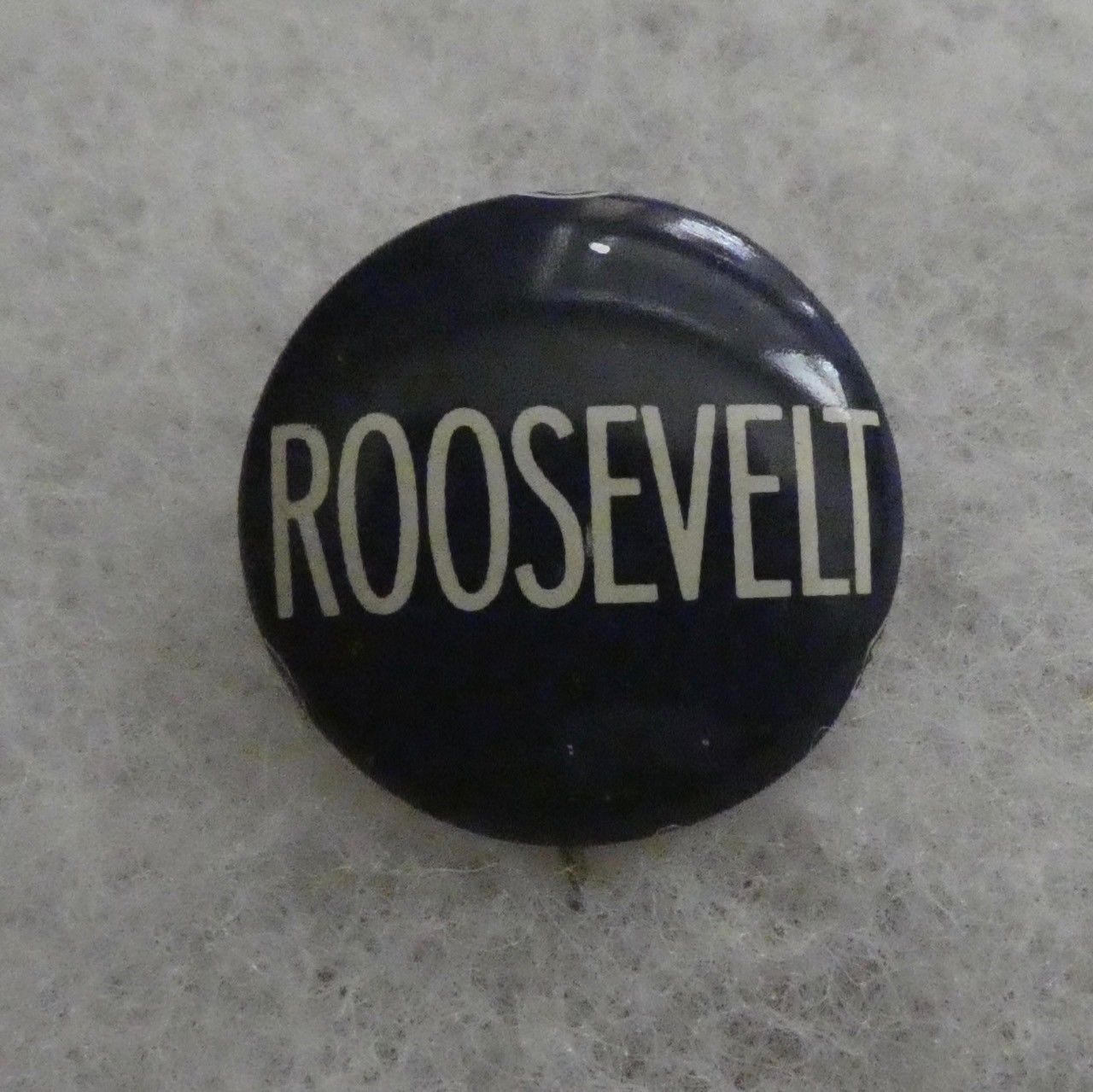 Title (ebay affiliate link): VINTAGE 1940 "ROOSEVELT" WHITE ON BLUE CAMPAIGN BUTTON BY BASTIAN BROS.