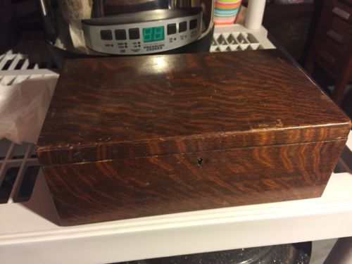 Tiger Oak Early Wooden Box Very Clean. Lined , Very Nice