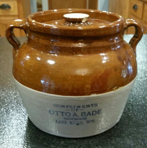Antique Red Wing Stoneware Bean Pot with Advertising