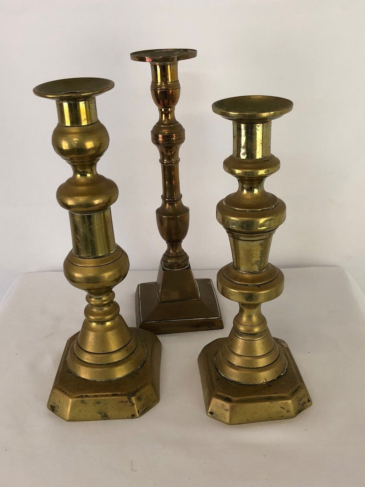 Title (ebay affiliate link): 3 ANTIQUE EARLY 19th c. BRASS CANDLESTICKS MIX AND MATCH LOT 1 HAS ORIG EJECTOR