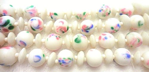 LOVELY VTG 2 Strand Milk Glass Beads with Swirled colored in Glass Beads