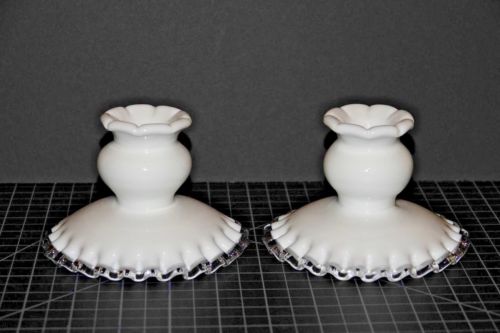 Fenton Milk Glass Silver Crest Pair of Candle Holders