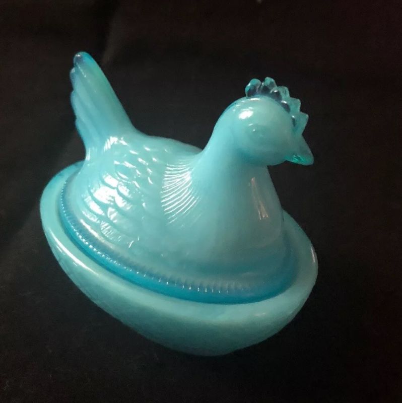 Title (ebay affiliate link): Westmoreland French Blue Milk Glass Hen In Basket, Opalescent