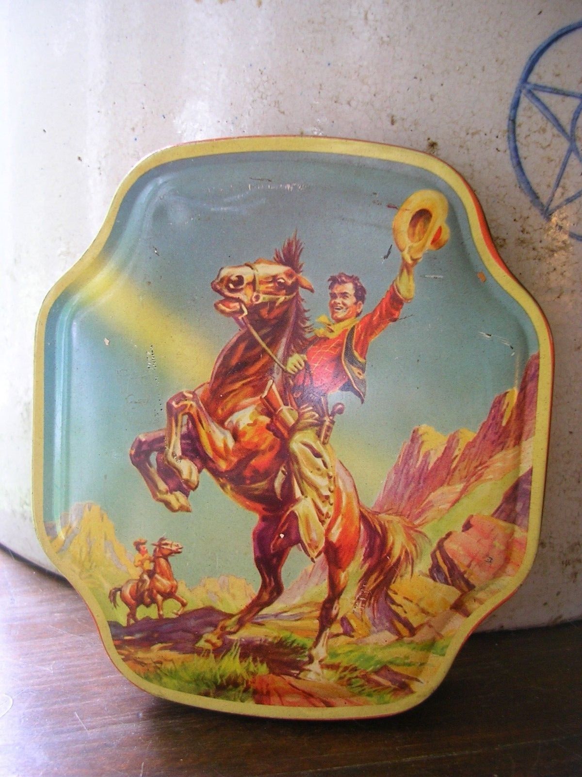 VINTAGE HORNER HORNER''S TIN COWBOY WITH HORSE MADE IN ENGLAND CANDY RARE!