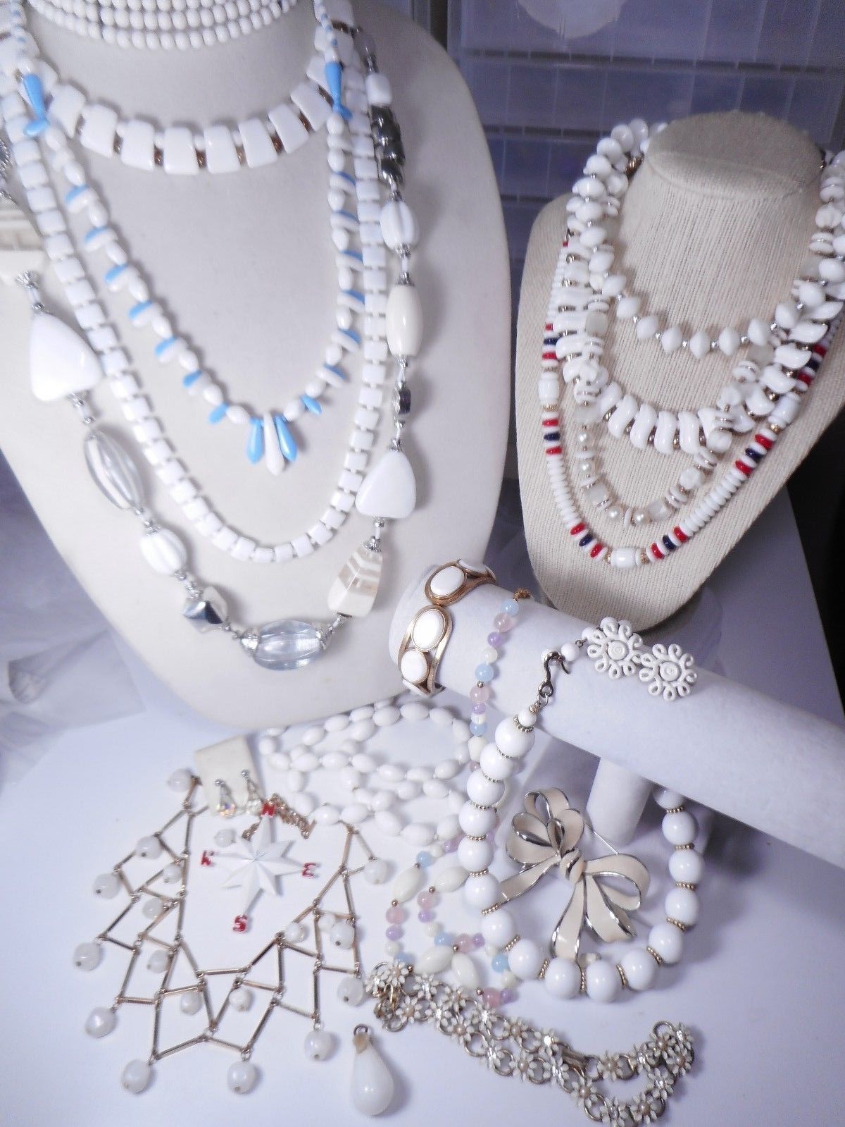Title (ebay affiliate link): Lot 21 WHITE Vintage Estate Jewelry Milk Glass Bead Necklaces Enamel Pin Earring