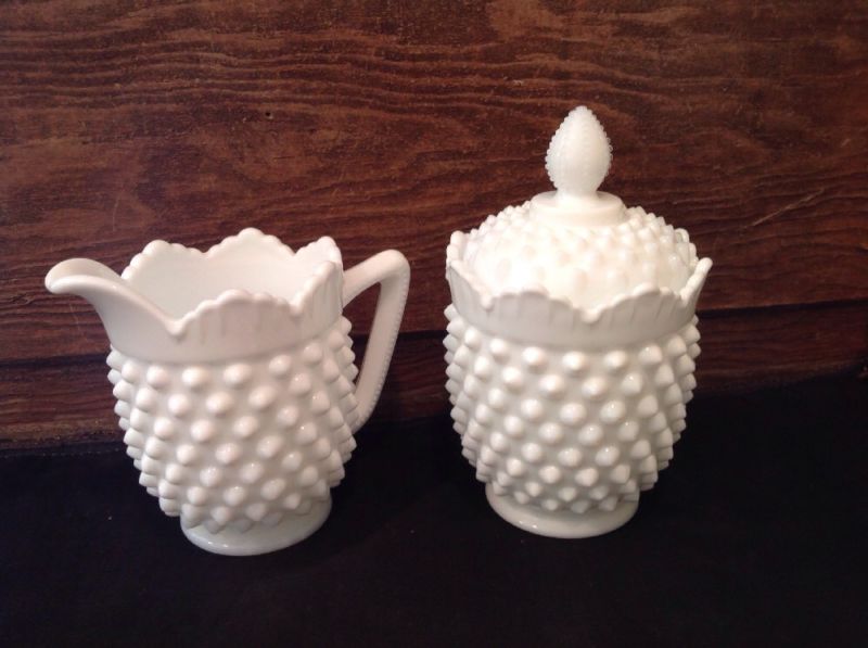 Vintage Fenton Hobnail Milk Glass Sugar & Creamer