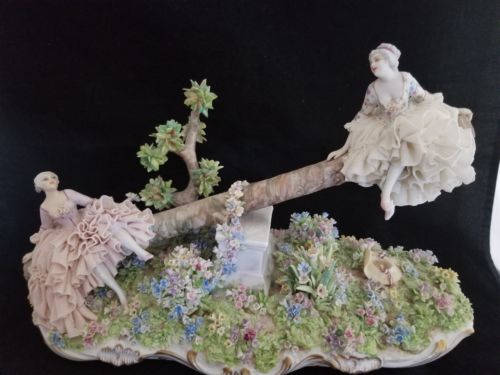 Title (ebay affiliate link): ANTIQUE LUIGI FABRIS ITALIAN PORCELAIN DRESDEN LACE FIGURINE FIGURAL CAPODIMONTE