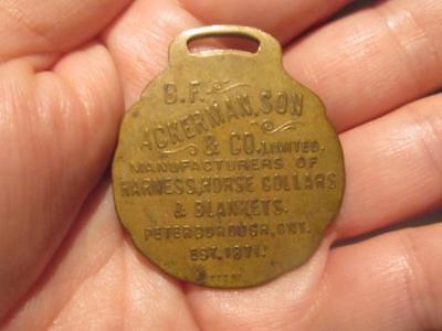 Horse Head Brand Saddlery Vintage Solid Brass Advertising Fob B F Ackerman Son