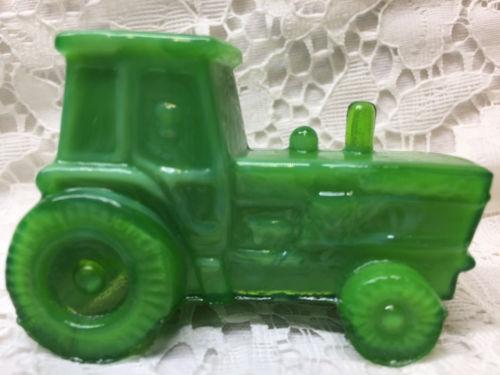 Title (ebay affiliate link): Green Jadeite milk glass farm tractor candy container john deere Slag marble art