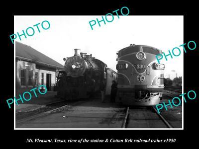 OLD LARGE HISTORIC PHOTO OF MT PLEASANT TEXAS, COTTON BELT RAILROAD DEPOT c1950