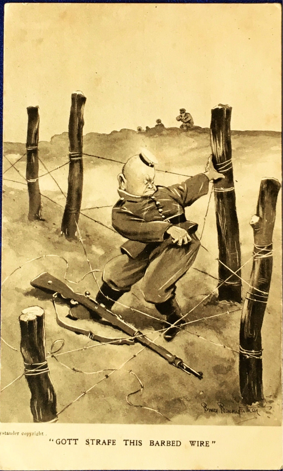 Title (ebay affiliate link): BRUCE BAIRNSFATHER, WW1 MILITARY, Series.4, "Gott Strafe this Barbed Wire"