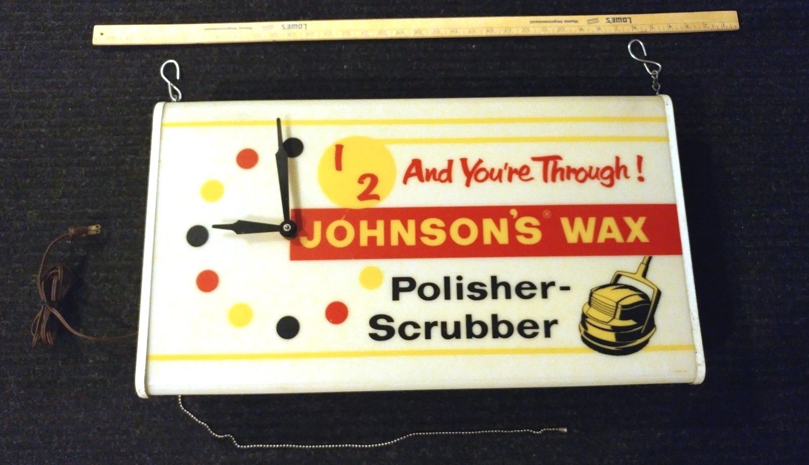 Title (ebay affiliate link): Early 1970''s Electric Lighted Advertising Clock & Sign - Johnson''s Wax - Works!