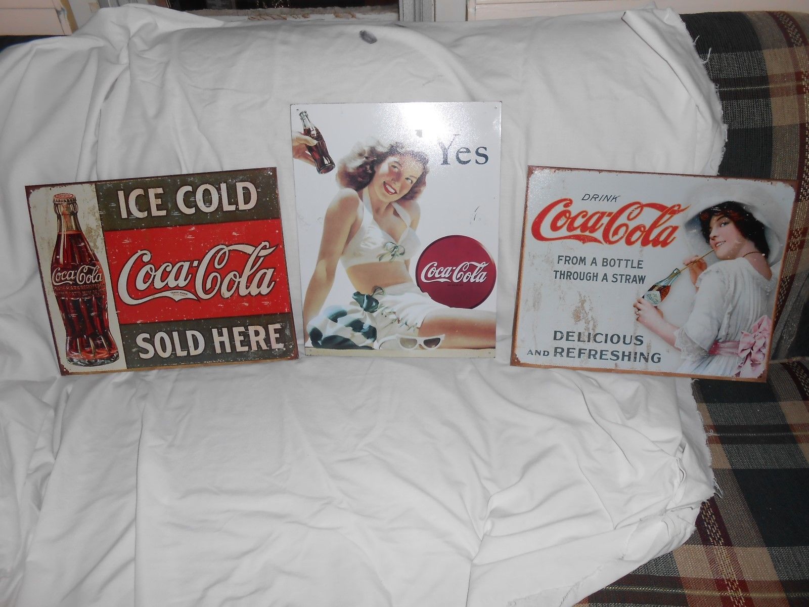 Title (ebay affiliate link): Coca-Cola signs tin 3ea made in USA all in goodcond. 16 x 13 x 1/4 pre-owned