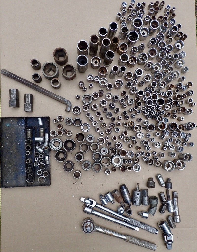 Title (ebay affiliate link): huge lot of used sockets SAE and metric & some specialty ratchet attachmennts